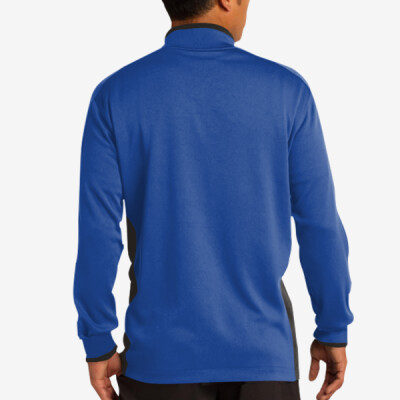 A boldly striped inner collar and reverse coil zipper give this cover-up a modern edge. Of course, it also performs with Dri-FIT moisture management technology. The design features a rib knit collar and cuffs and an open hem. The contrast Swoosh design trademark is embroidered on the upper left sleeve. Made of 8.3-ounce, 100% Dri-FIT polyester.