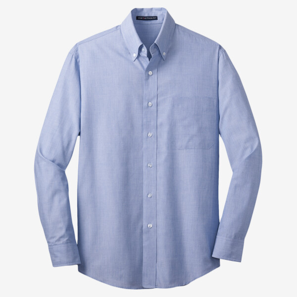 With a beautiful two—color weave—not to mention wrinkle resistance—this poplin shirt has a pleasing texture and truly impresses in the office.