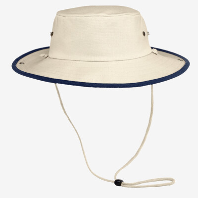 Excellent protection from the sun in a sporty design featuring a drawcord with cord locks and brass eyelets. Two side snaps allow you to wear brim up or down.