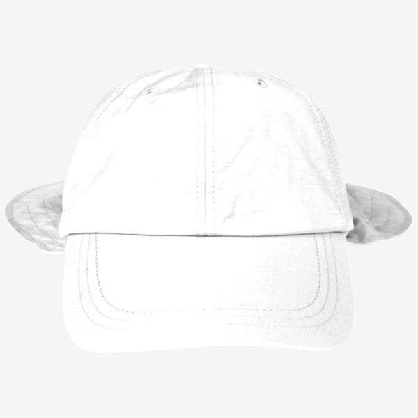 70% cotton, 30% nylon; Metal clip attached to collar & a cord system with barrel lock to adjust sizing; Treated with a water- and stain-repellent coating; Rayosan® treated to reflect UV rays(UPF 45+); UPF 45+ flag label on back closure; Terry cloth sweatband; Neck cape with patented zipper pocket; Visor length is 3" for added sun protection; Green undervisor reduces sun glare; Adams exclusive Cool-Crown™ mesh lining; Sewn eyelets; ;