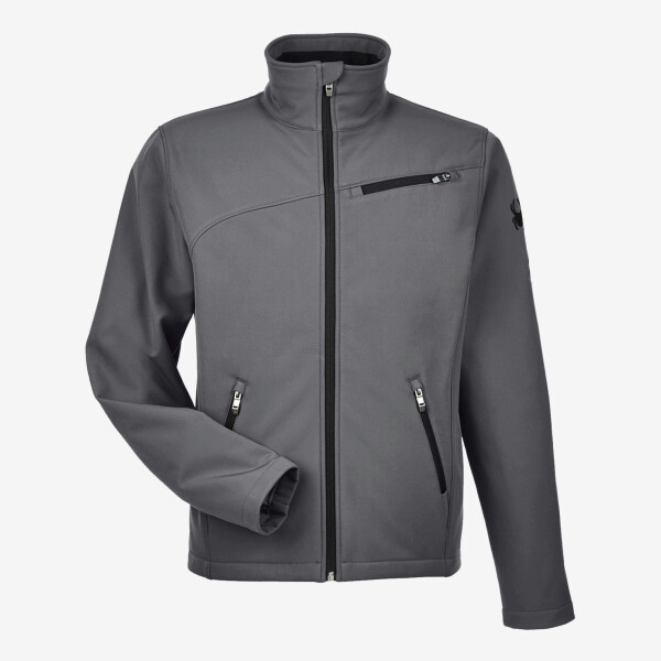 94% polyester / 6% spandex softshell fabric ; 3-layer fabric with X T.L laminate; Micro-brushed tricot chin and inner trim accents; Reverse coil center front zipper; Zippered handwarmer pockets; Zippered chest pocket; Asymmetrical seam accents; Modern fit;
